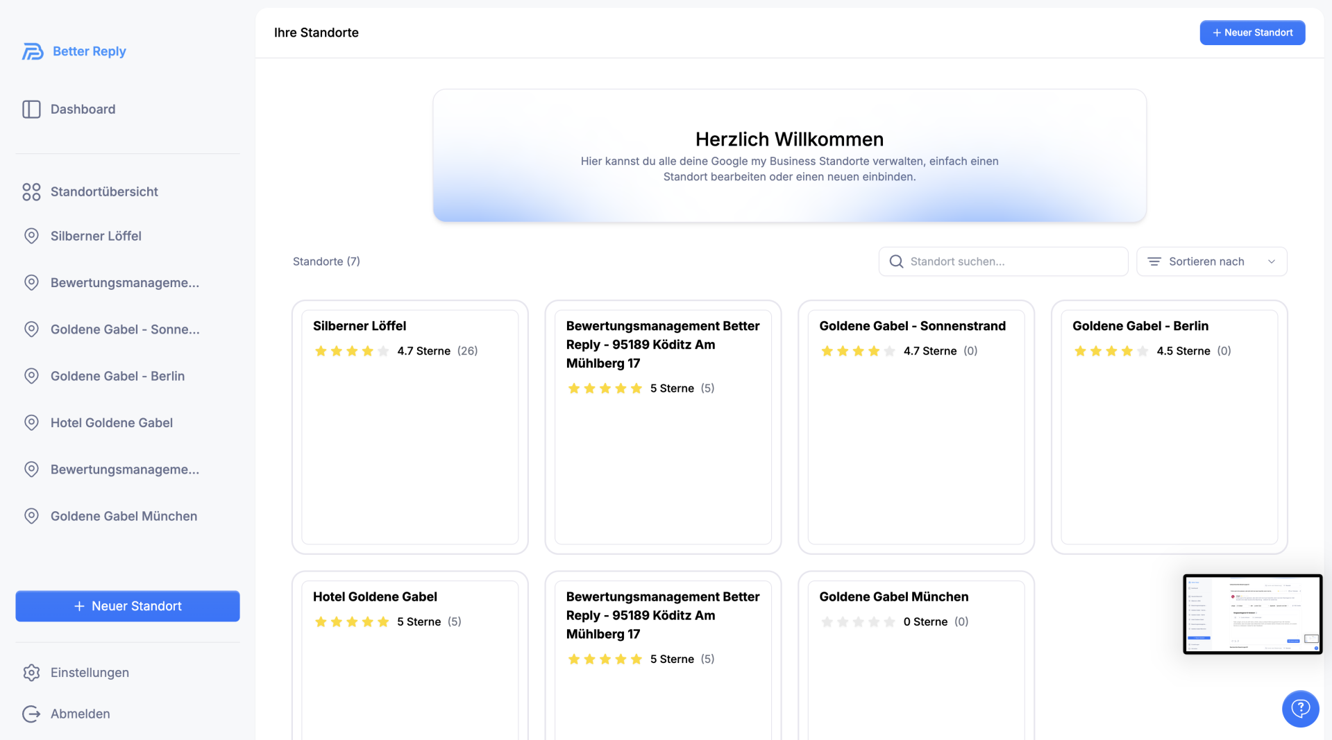 4 Google Standorte - Sehr zu empfehlen bei vielen Bewertungen - erleichtert den Ablauf bzw. Prozess von Bewertungen. Gründer ist zudem schnell zu erreichen und hilft bei Problemen.